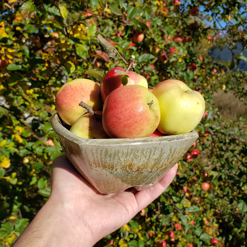 A thrown and altered bowl glazed with locally foraged minerals. Great size for a small meal or a large dessert.